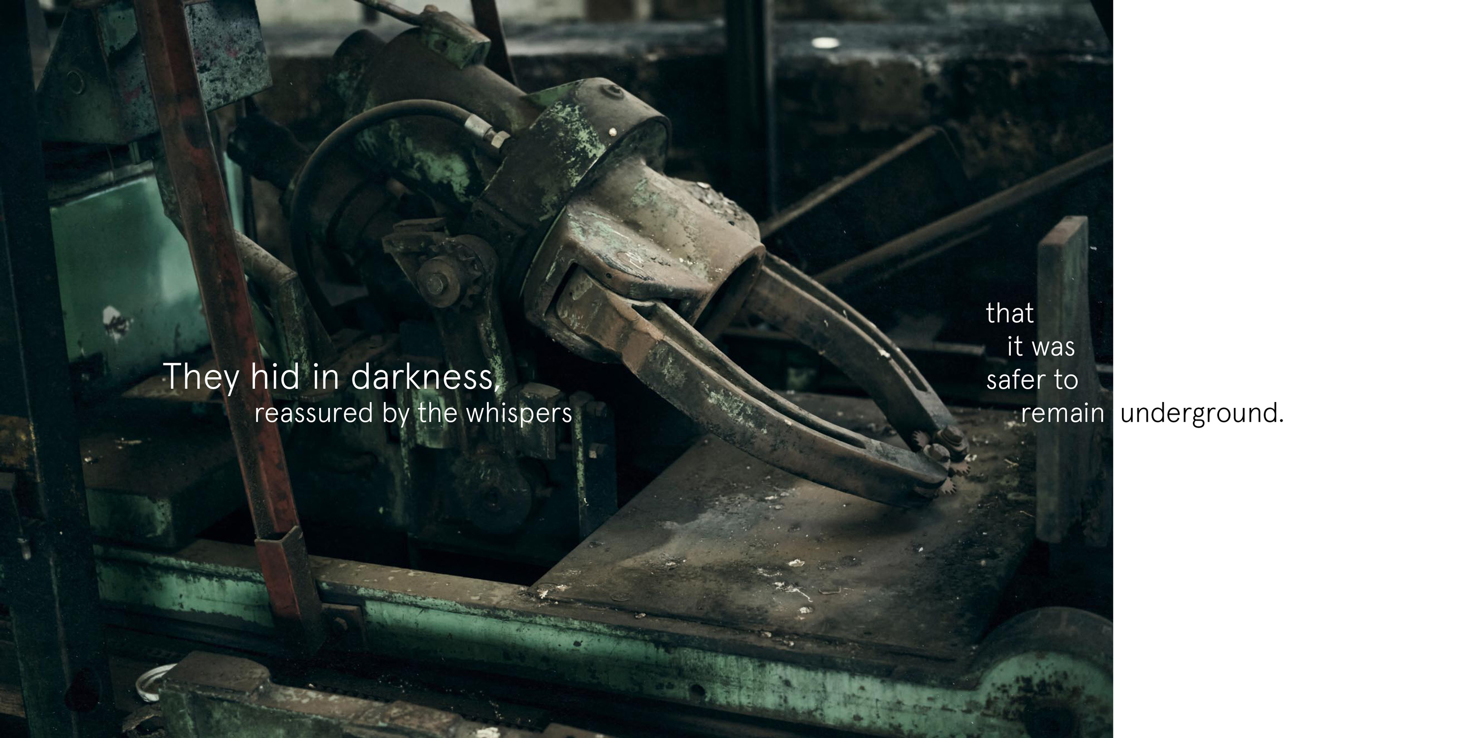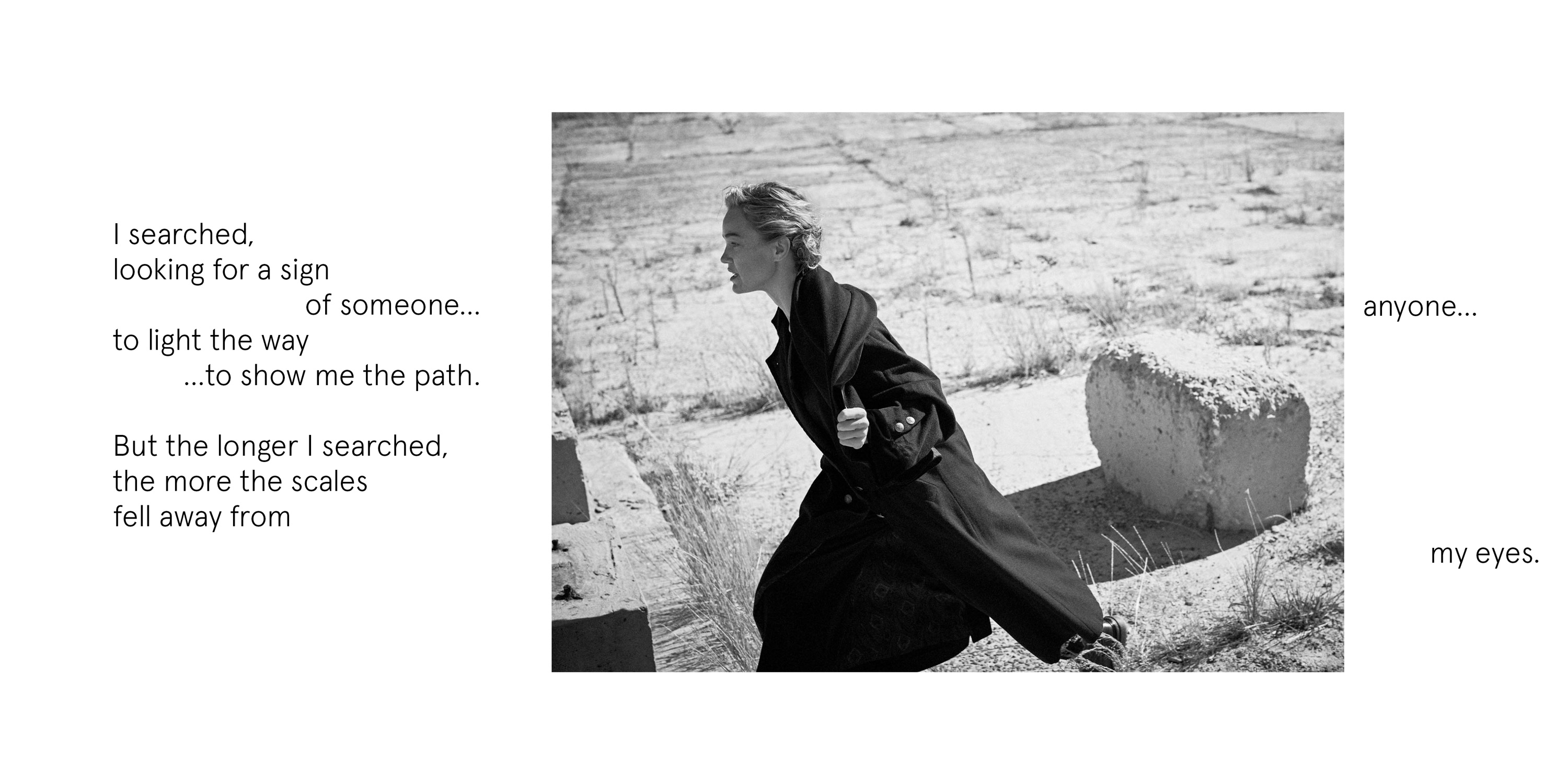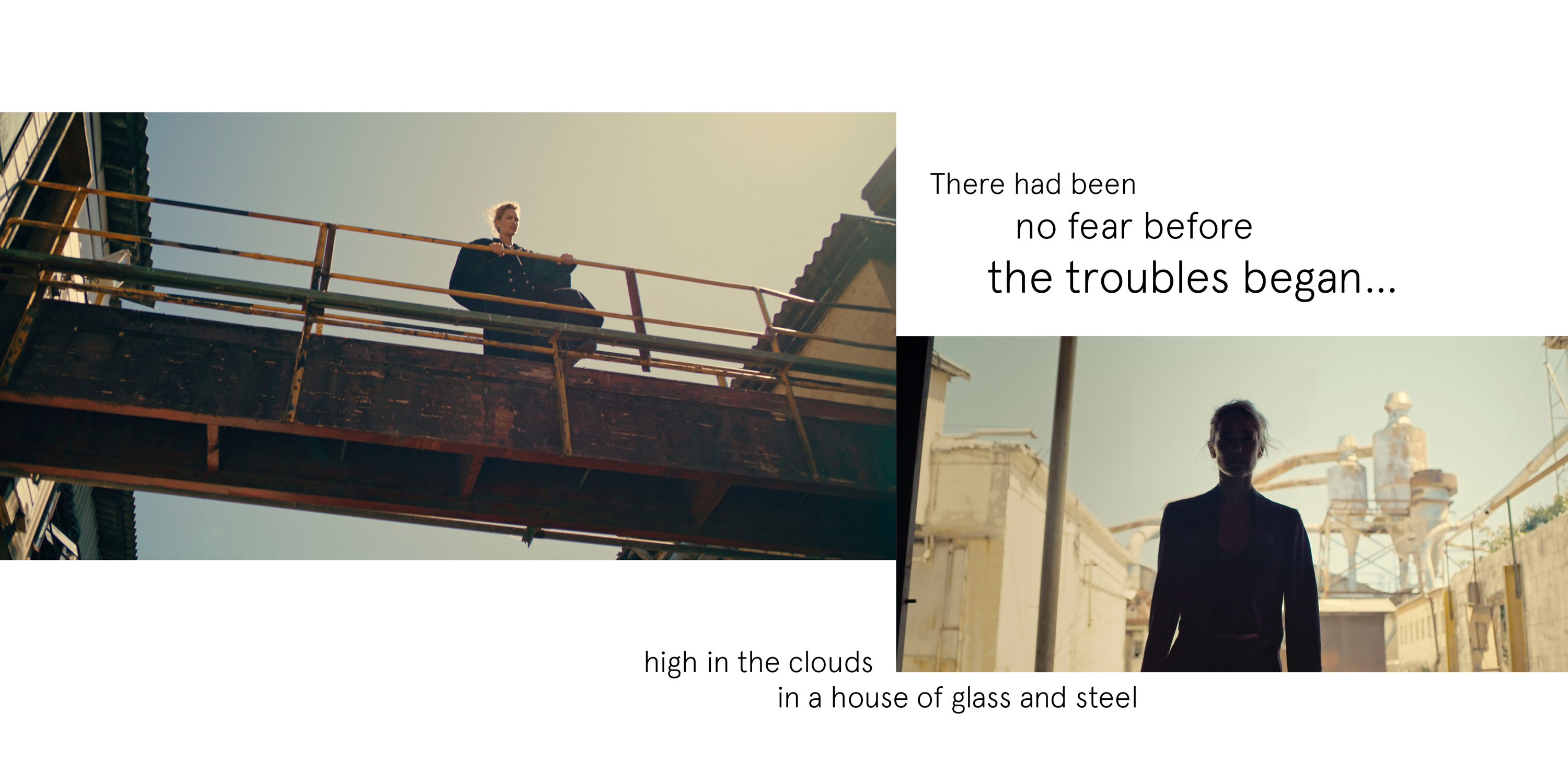 Copywriter Kim Golden used my Imagery to develop a short story, I’d urged for optimistic metaphors and Escapism, to sit alongside my own visual Dystopian world. The character she developed took form as an older self, recounting distant memories in flashbacks, voiced in lockdown by another connection, Swedish Actor Annika From Borg, who added further mystery to the youthful flashbacks and depth to the voice.